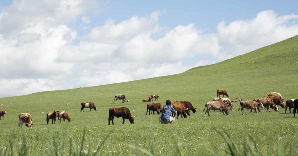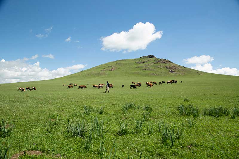 ひつじやヤギの群れがゴマ粒のようにも見える、手つかずの大草原で、存分に乗馬もお楽しみいただけます。